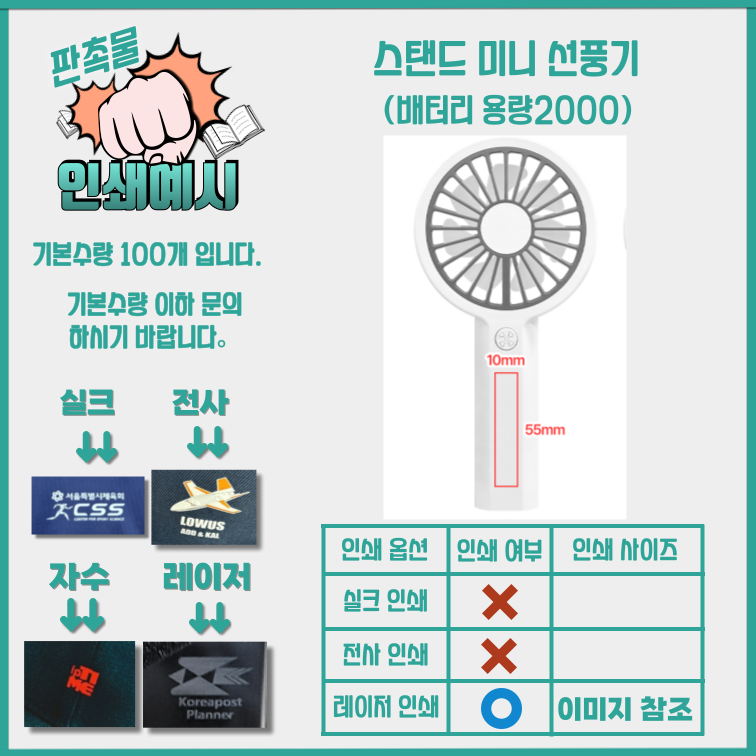 핸디 미니 선풍기 휴대용 탁상용 스탠드거치대 (배터리 용량2000)