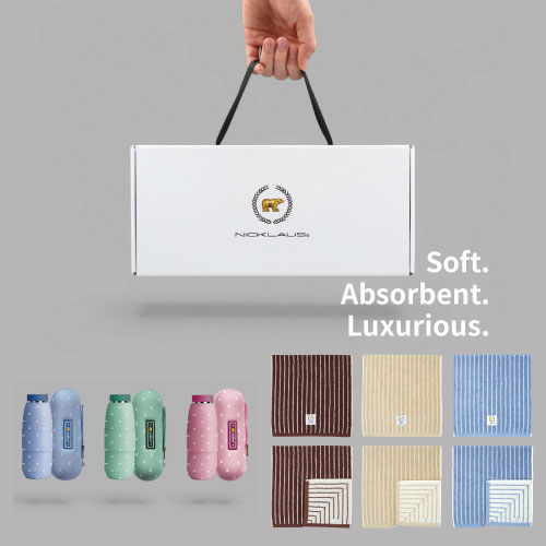 잭니클라우스 5단캡슐베어우양산+호텔수건 스트라이프 180g (국산) 선물세트
