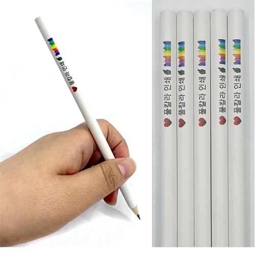 [풀칼라 인쇄] 화이트 원형 미두 연필 1P