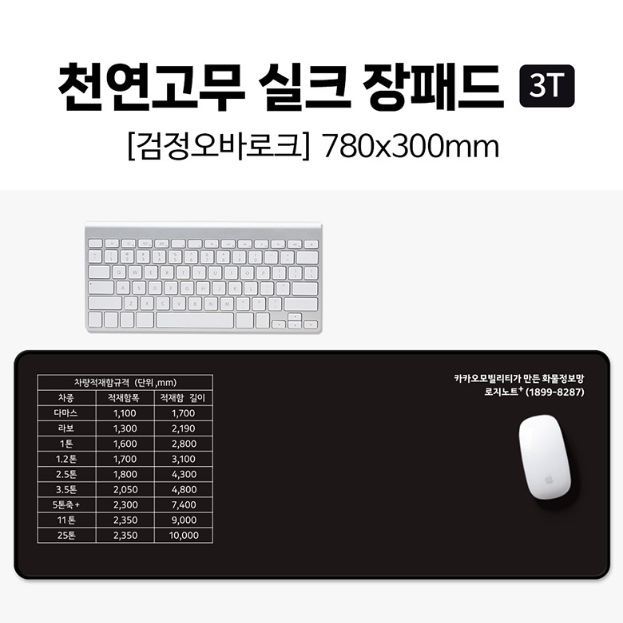 천연고무 실크 장패드 (780×300mm 3T ,검정오바로크)