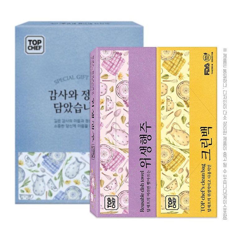 [탑셰프] 빨아쓰는위생행주+위생장갑+크린백+컬러지퍼백 (4종세트)